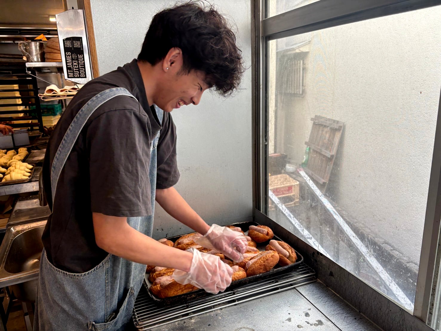 出勤してからは、オープンで出すパンを成形して焼いて加工です!10:00にオープンしてからは翌日の営業に向けた仕込み(生地、加工用のパンの焼成、調理など)